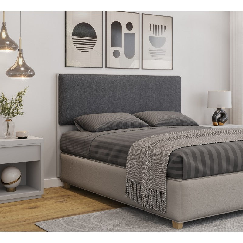 Cabecero tapizado UNI 160, MDP blanco, tejido chumbo, 160x5x90 cms