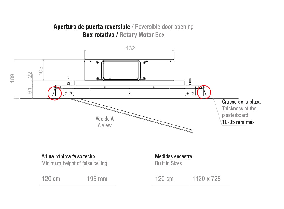 Campana disponible en frontal de 120 cm.