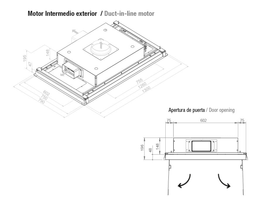 - Box-motor giratorio que permite el cambio de dirección de la salida del aire, facilitando de esta forma su instalación.