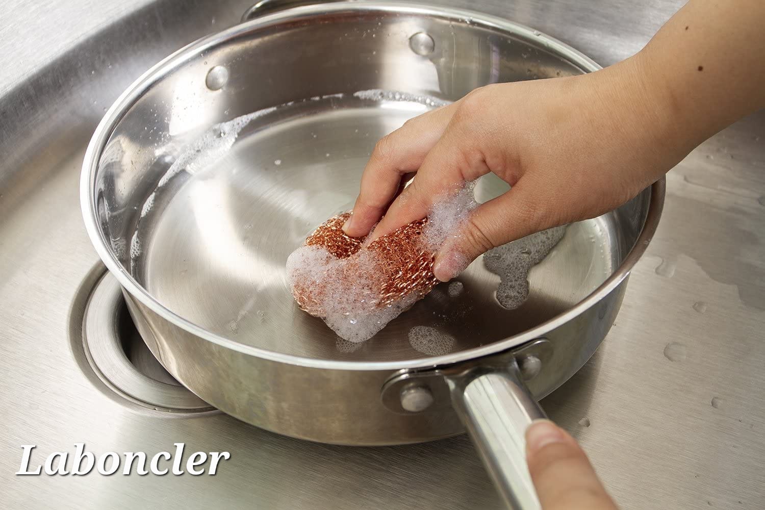 El cobre no se oxida, no raya y funciona muy bien para eliminar la suciedad seca y resistente fácilmente con unas pocas pasadas.