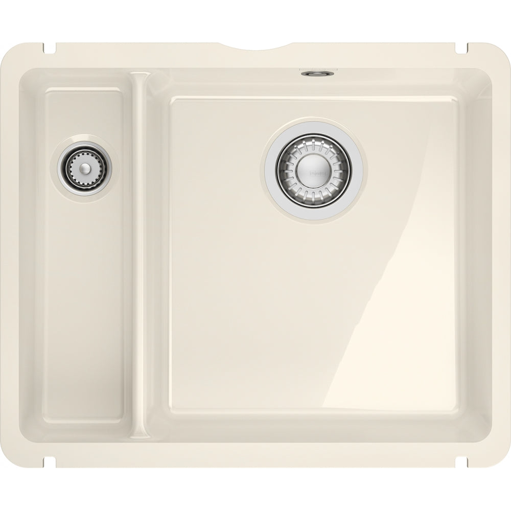 Mueble: 60 cm Instalación: Bajo encimera Material: Fraceram Totales: 545 x 445; R30 mm Cubetas: 375 x 385 x 190; R15 mm/115 x 385 x 120 mm Bajo encimera: 495 x 375; R15 mm