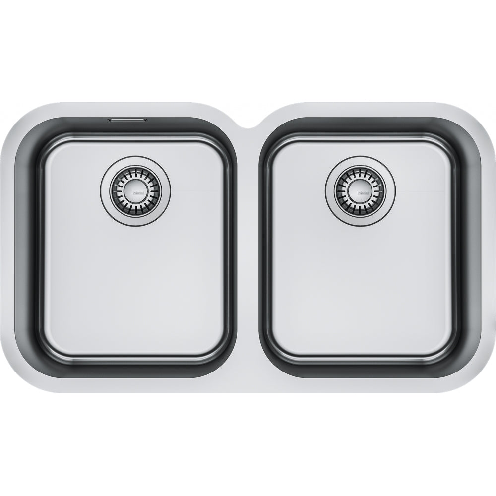 Mueble: 90 cm Instalación: Bajo encimer a Material: Acero inoxidable Totales: 761.9x447 mm Cubetas: 341x401x180; R70 mm 341x401x180; R70 mm