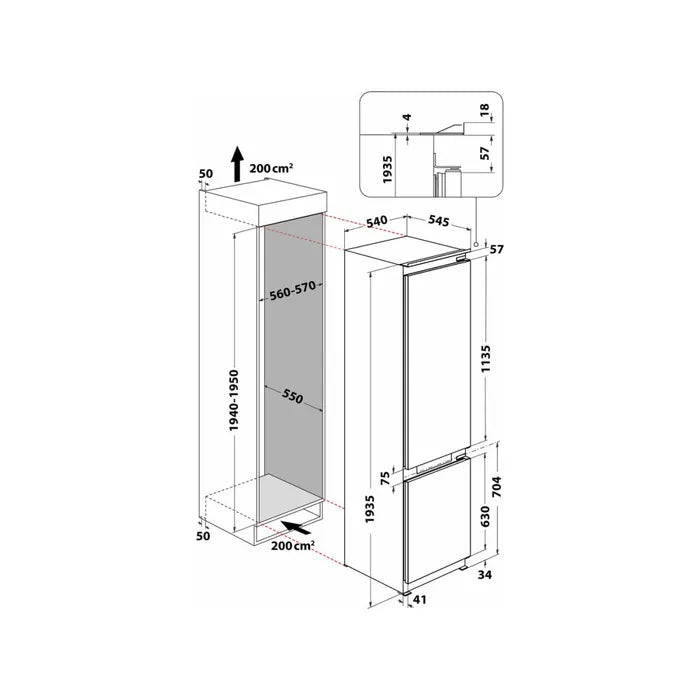 Frigorífico combinado integrable 2m • Medidas: 194x54x55 cm. • Color Blanco • Clasificación Energética: E • Tecnología 6th Sense • Total NoFrost • Control electrónico • Display LED • Cajón FreshBox+ • Cajón Multi FreshBox • Columna Multiflow Inox • Balcones flexibles • Bandeja fácil acceso congelador • Botellero Inox 2 en 1 • Función Super Congelación • Puertas reversibles • Alarma control de temperatura • Instalación puerta deslizante • Rumorosidad 32 dB(A) • Capacidad neta total: 329L