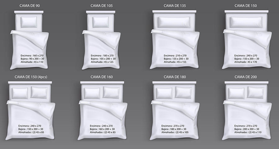 CAMA 180 - sábana encimera 270x270 cm, sábana bajera 180x190/200 cm y 2 fundas de almohada de 45x105 cm.