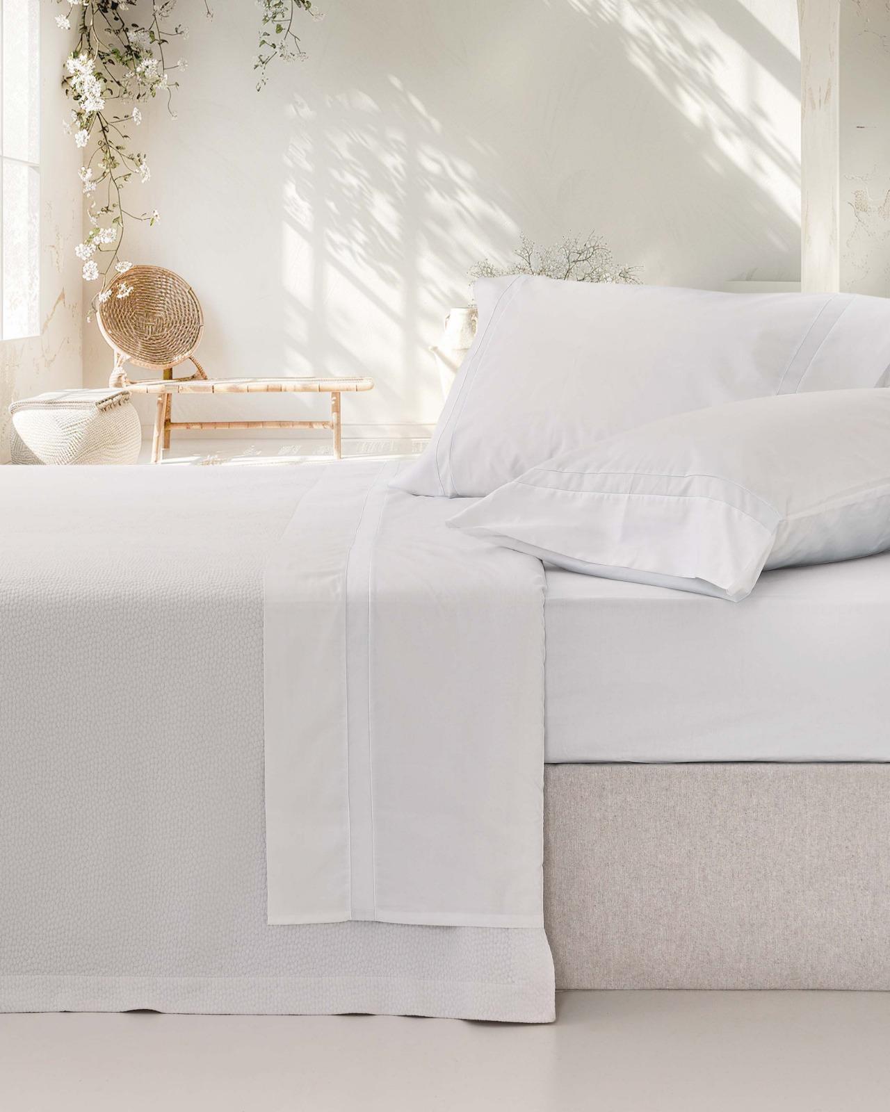 JUEGO SÁBANAS 100% ALGODÓN PERCAL PEINADO 200 HILOS VIDAL HOME Color: BLANCO-BLANCO.