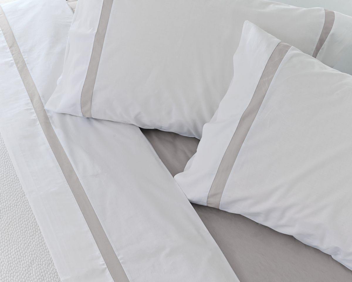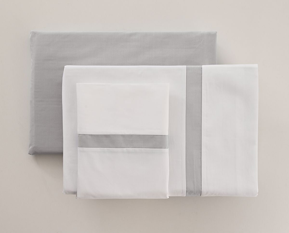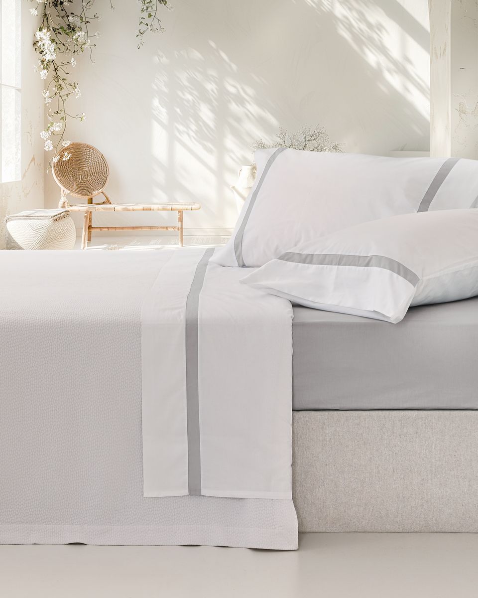 JUEGO SÁBANAS 100% ALGODÓN PERCAL PEINADO 200 HILOS VIDAL HOME Color: BLANCO-GRIS.